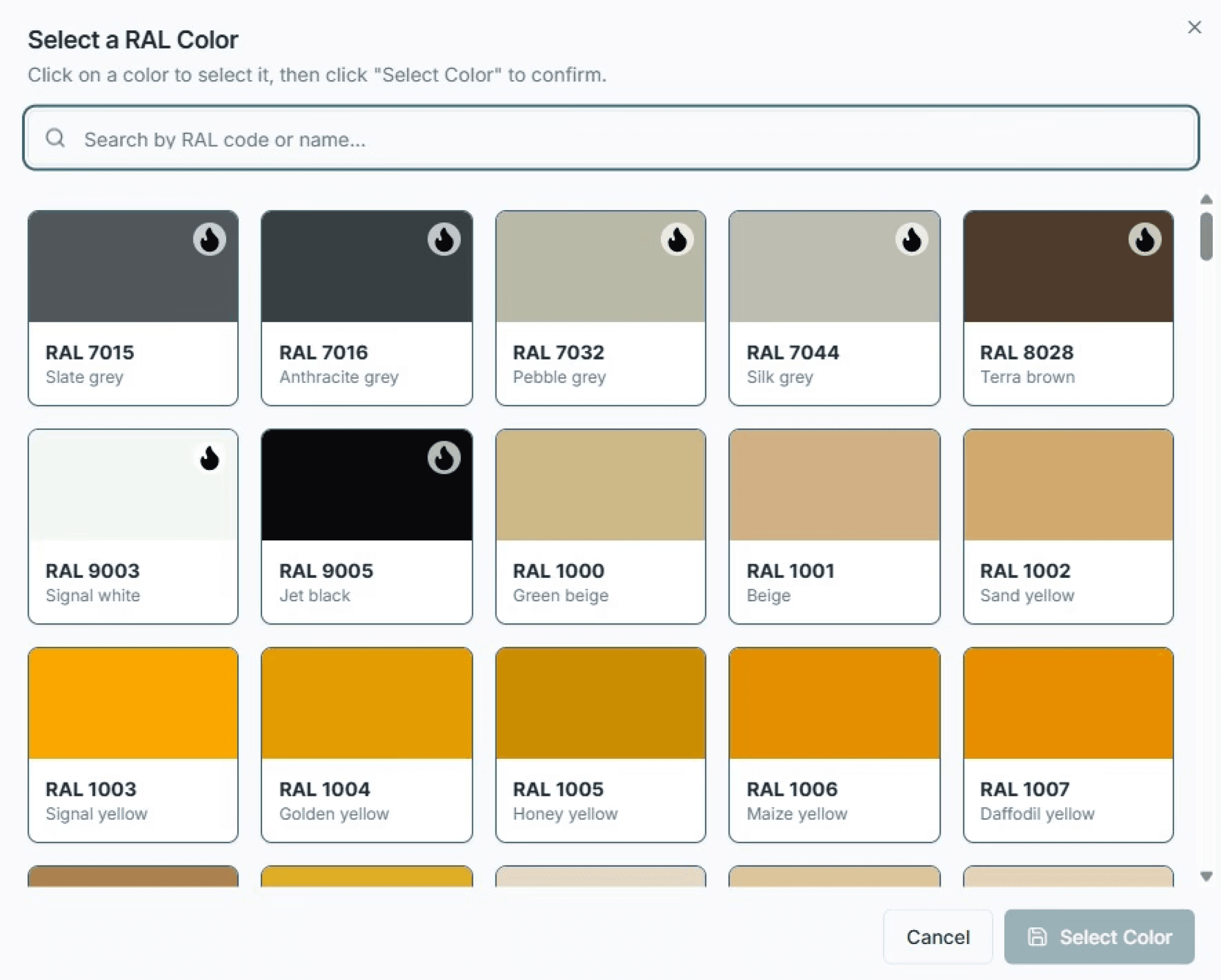 Any RAL colour: hundreds of architectural finishes with UV-stable,